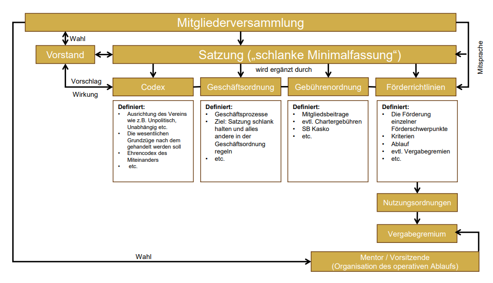 Besonders wichtig ist uns in unserem Verein, dass wir den Aktivitäten des Vereins durch Ordnungen und Richtlinien einen Rahmen geben. Dadurch wollen wir eine hohe Transparenz für unsere Mitglieder und Außenstehende erreichen. Die MV hat wie bereits erwähnt volles Mitspracherecht und somit vollen Einfluss auf die Aktivitäten des Vereins. Die Mitglieder haben konkret direkten Einfluss auf die Verwendung der finanziellen Mittel und auf die Umsetzung von Förderkonzepten.